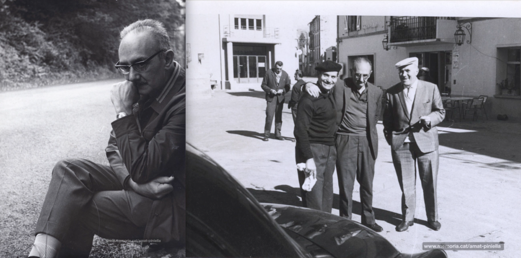 A les fotografies podem veure Joaquim Amat-Piniella sol; al Passeig de Pere III de Manresa, als anys 30, amb diversos amics (Joan Clara, Pere Armengou, Antoni Martí Farreras….); a Viena, amb Joan B. Claret; amb Joan Clara al cementiri de Père-Lachaise de París, davant del monument de Mauthausen, i amb Joan Clara i Josep Bailina en unes fotografies de les quals desconeixem el lloc i la data.