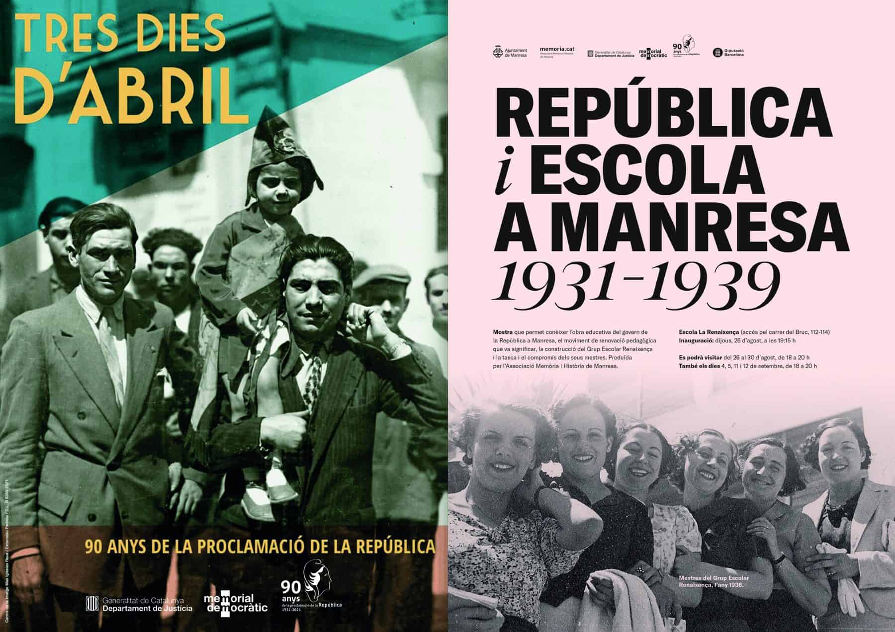 Dins dels actes de la Festa Major de Manresa, dijous vinent, dia 26 d’agost, a les 19:15 h., tindrà lloc al Grup Escolar Renaixença la inauguració de dues exposicions relacionades amb la República: