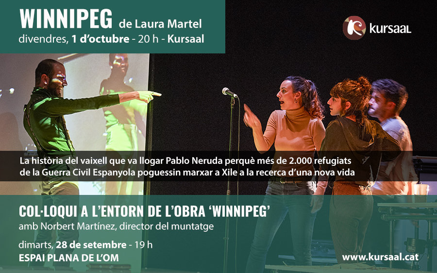 El divendres 1 d’octubre, a les 20:00 h, tindrà lloc al Teatre Kursaal de Manresa la representació de l’espectacle Winnipeg, de Laura Martel.