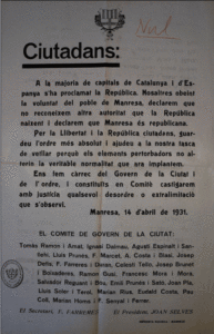 A l’esquerra, ban de la Junta de Govern Republicana Provisional de Manresa sobre la proclamació de la República