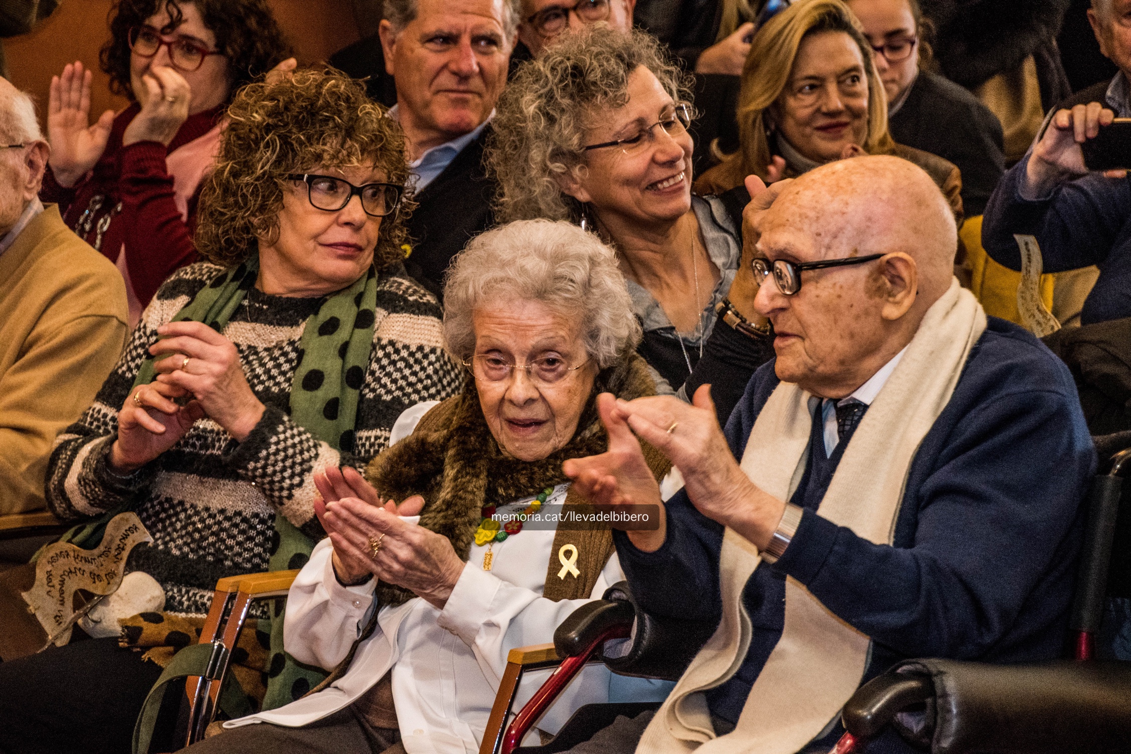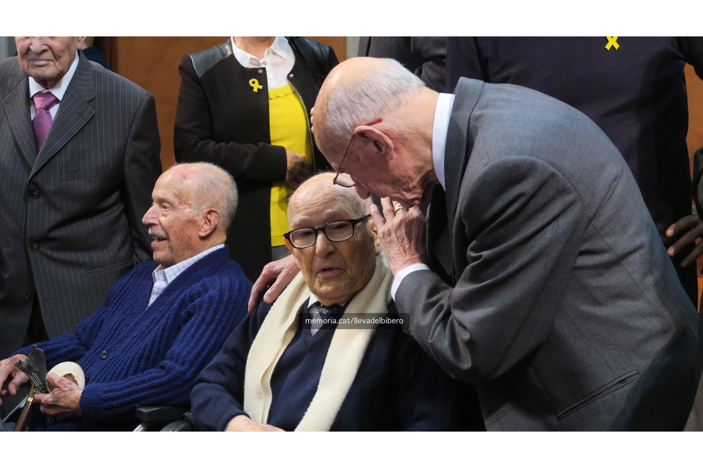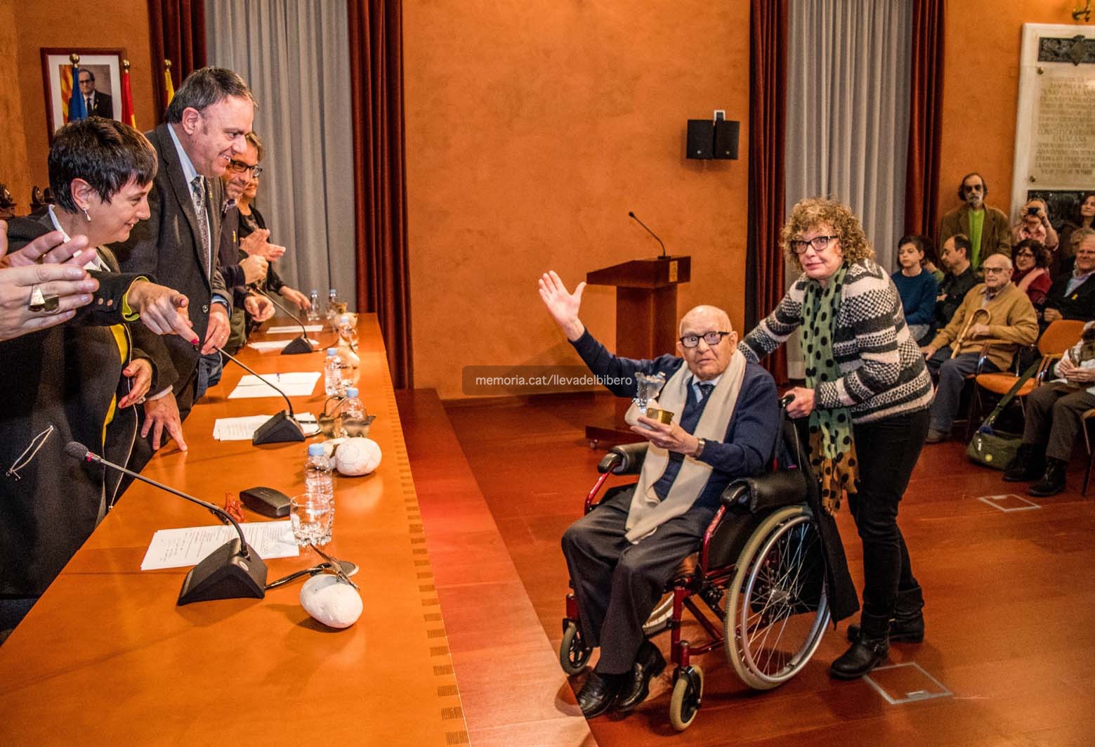 2/12/2018: Tomàs Dalmau, en l’acte d’homenatge als bagencs de la “Lleva del biberó”, celebrat al saló de sessions de l’Ajuntament de Manresa. El podem veure amb la seva filla Montserrat; la seva esposa, Margarida Marcet, i el també “biberó” Jaume Navarro, els dos darrers, traspassats recentment.
