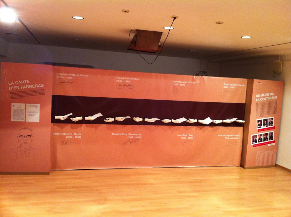 A l’exposició es pot veure la reproducció de la carta i d’una manera ben gràfica com va passant de mà a mà per tots els presidents del Parlament de Catalunya del 1980 ençà, com a símbol de continuïtat històrica.