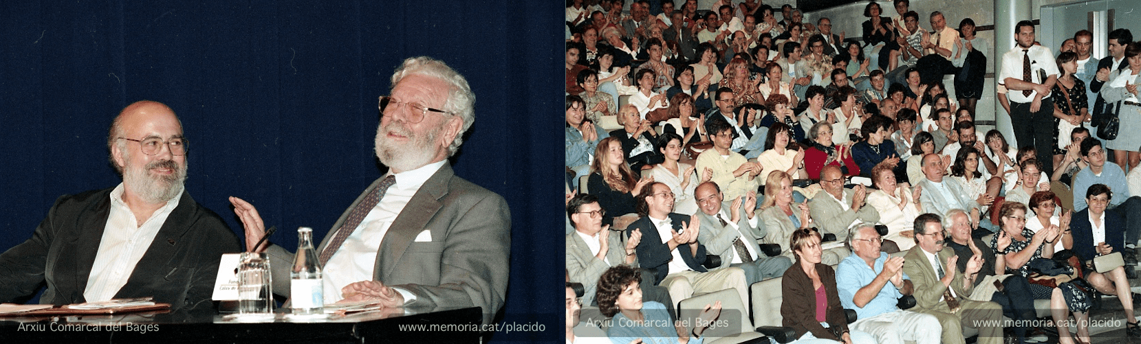 Durant l’acte Luis García Berlanga fou acompanyat del crític de cinema manresà Manuel Quinto, que li formulà les primeres preguntes. Berlanga, entre moltes altres coses, va afirmar que Plácido pretenia ironitzar sobre la caritat organitzada i que la censura els obligà a canviar el títol inicial de Siente un pobre a su mesa. Deixà ben clar que Plácido era la seva millor pel·lícula: “me parece la película mejor dirigida por mí, con el mejor guion, la mejor historia y con el ritmo más adecuado; […] la película más importante de mi vida cinematográfica”. Explicà el perquè es va filmar a Manresa, que a Hollywood no es podien creure el pressupost tan baix del film, que els grans directors de cinema es pensaven que tots els que hi sortien eren actors contractats –ja que no miren mai a la càmera– i que el fet que una dotzena dels grans mestres del cinema s’interessessin i valoressin Plácido va ser el moment més emocionant de la seva vida cinematogràfica.