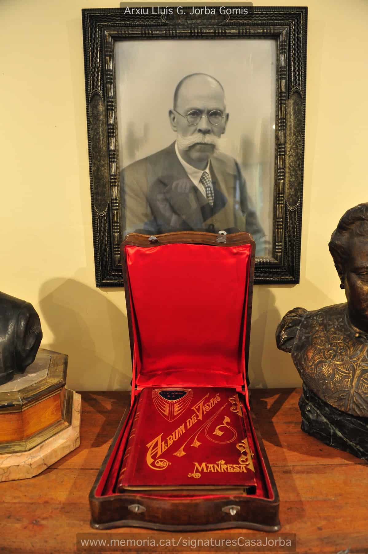 En pàgines especialment il·luminades, hi ha les signatures de la Infanta Isabel de Borbó, el 23 de juliol de 1912; del rei Alfons XIII, el 19 d’octubre de 1926; i del general Francisco Franco, el 20 de maig de 1947. Entremig, hi podem conèixer les signatures i les dedicatòries de tot de personalitats: Francesc Macià (l’any 1922), Carme Karr, Àngel Guimerà, Josep Torras i Bages, Francesc Vidal i Barraquer, Francesc Cambó, Lluís Millet, Alejandro Merletti, Anselm M. Albareda, Eusebi Bertrand i Serra i altres. Tancant l’àlbum de visites, trobem sis pàgines on el 8 de juny de 1980 van signar els antics empleats dels Magatzems Jorba que van assistir a la trobada que es va fer a l’Hotel Pere III de Manresa.