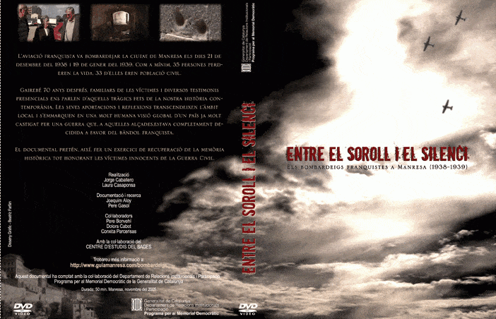 Continuant les activitats amb motiu dels 75 anys dels bombardeigs sobre Manresa, aquest dijous 30 de gener, a les 19:30 h, tindrà lloc al refugi antiaeri del Grup Escolar Renaixença (carrer del Canonge Montanyà, 2) la projecció del documental Entre el soroll i el silenci. Els bombardeigs franquistes a Manresa (1938-1939), realitzat per Jorge Caballero i Laura Casaponsa a partir de la recerca i la documentació de Joaquim Aloy i Pere Gasol, produït amb la col·laboració del Memorial Democràtic de la Generalitat de Catalunya. El documental serà presentat per Josep Alert, de l’Associació Memòria i Història de Manresa.