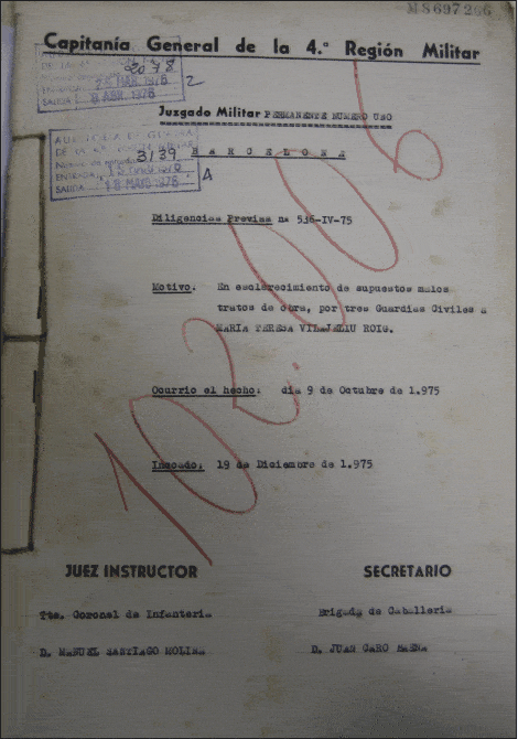 L’Associació Memòria i Història de Manresa fa públics una cinquantena de documents inèdits relacionats amb el procés judicial que Teresa Vilajeliu va iniciar l’any 1975, en denunciar tres guàrdies civils per presumptes maltractaments. El cas s’emmarca en el si d’una operació policial que va comportar la detenció de prop de 25 militants antifranquistes de Manresa i Berga, vinculats a les Plataformes Anticapitalistes, el PSUC i CC OO, principalment. El desembre de 2010 l’Associació va dedicar un web específic al tema, que ara amplia amb aquesta documentació, procedent sobretot de l’arxiu del Tribunal Militar Territorial Tercer de Barcelona, a més d’alguns expedients de l’Arxiu Comarcal del Bages i d’una cessió documental de la mateixa afectada. Els informes s’han pogut consultar gràcies a l’autorització de la mateixa Teresa Vilajeliu.El valor de la documentació deriva del fet que es tracta de l’única denúncia de tortures presentada arran de les detencions de 1975, malgrat l’evidència de casos semblants entre altres detinguts. Els informes, tot i desestimar finalment l’acusació, demostren per si mateixos l’existència d’aquests maltractaments. Ho evidencia, per exemple, un certificat mèdic del Centre Hospitalari de Manresa del 12 d’octubre de 1975, signat al cap de tres dies després de la detenció i poques hores després que Vilajeliu fos alliberada. Així valoraven els metges l’estat físic que presentava: “contusión cadera derecha y ambos glúteos con hematomas, contusión ambas bases costales con hematomas. (Queda ingresada unos días en período de observación).” Un nou informe mèdic del 18 d’octubre mostrava que els hematomes havien anat minvant.