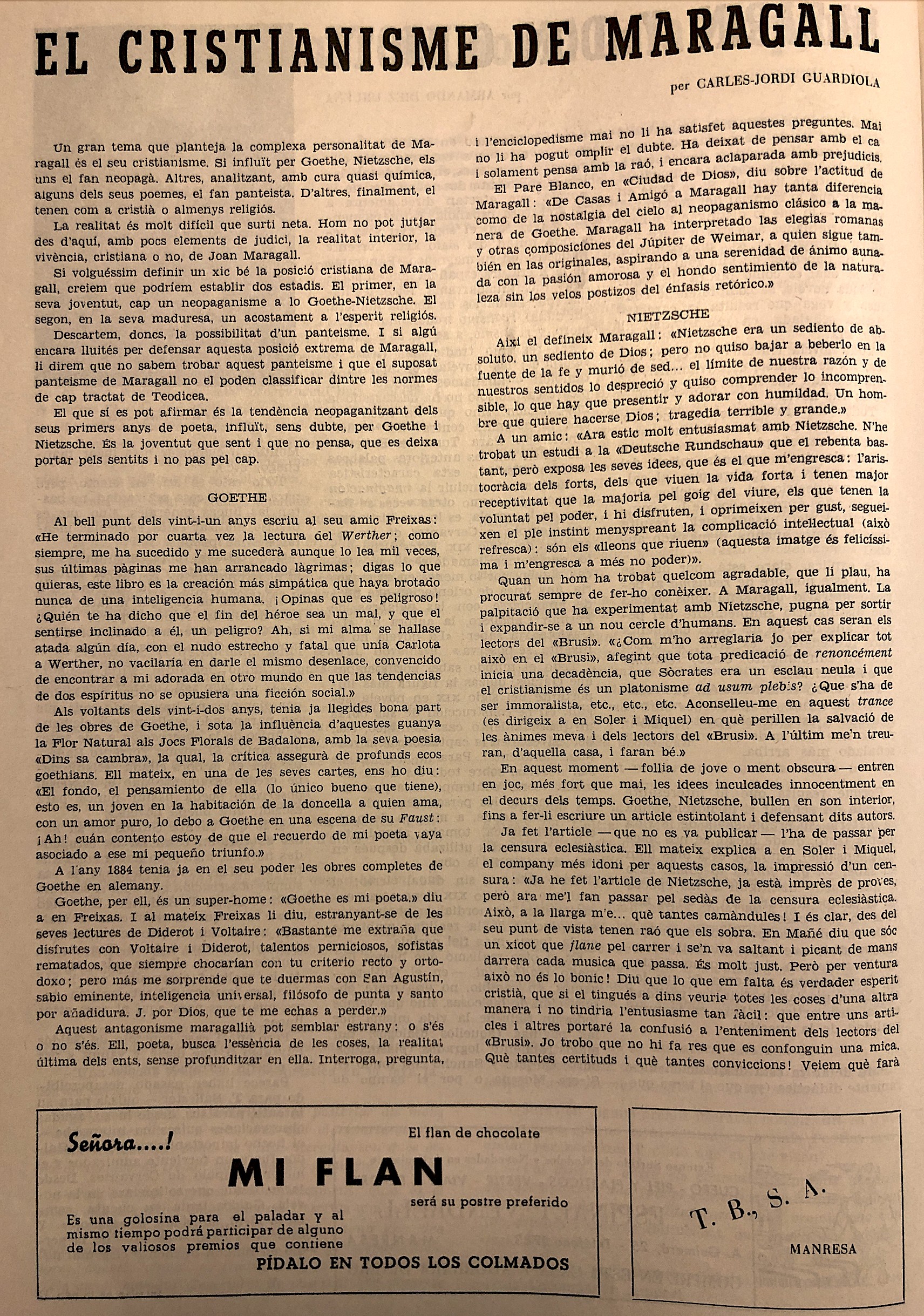 “El cristianisme de Maragall”. Carles-Jordi Guardiola (Revista Bages. Maig 1962)