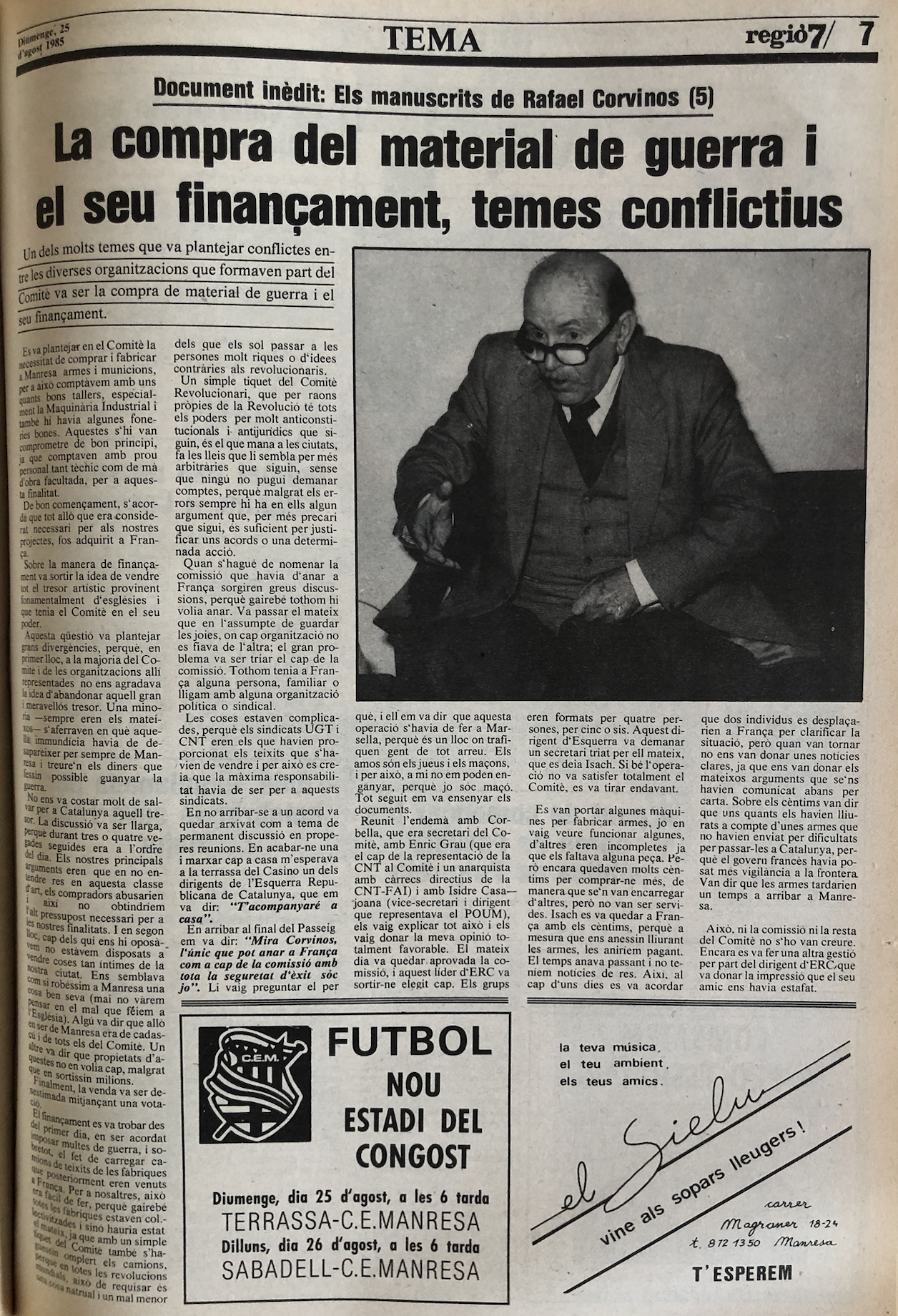 Extracte de les memòries manuscrites de Rafael Corvinos, publicades a Regió7 l’agost i el setembre de 1985.