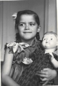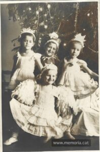 Recorda jugar amb unes nines que tenien el cap de fusta i el cos i el vestit els havien de confeccionar les mares. Ella, encara, en conserva una, que es diu Katiuska. També recorda baixar al pati del complex a jugar amb altres nens, a saltar a corda i a la xarranca. A l’hivern, feia molt fred i nevava força.