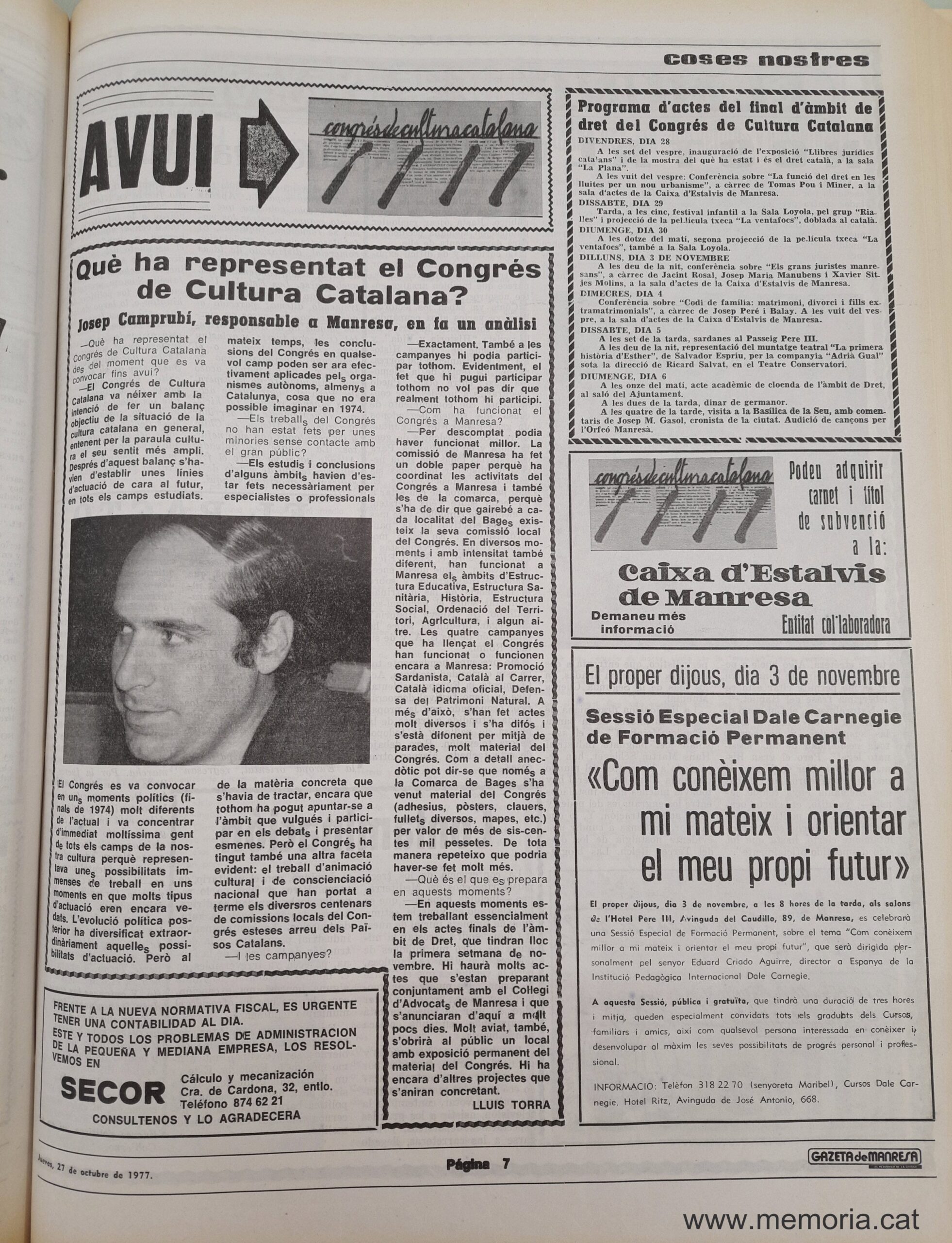 El 2 d’abril de 1977, es van presentar els treballs sobre L’estructura sanitària a Manresa, a la sala d’actes de la Caixa d’Estalvis de Manresa.