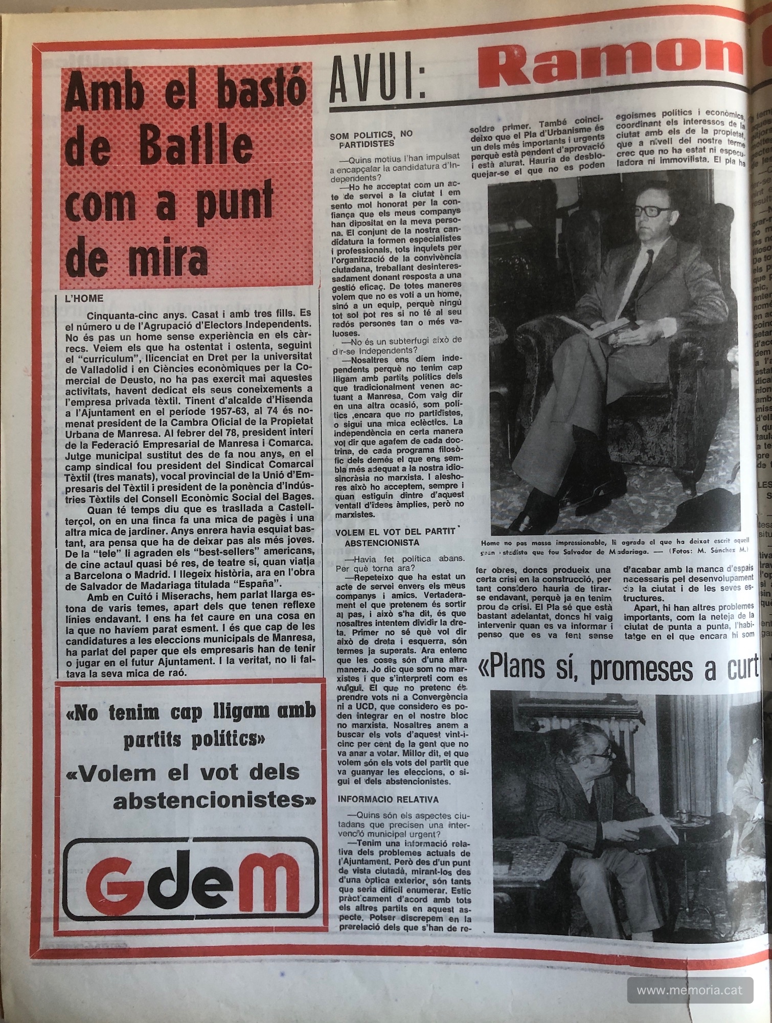 Aquí us adjuntem les entrevistes que, durant la campanya electoral, els periodistes Gonçal Macuñán i Boix i Joan Lladó i Font formularen als caps de llista, per als seus diaris respectius (Regió7 i Gazeta de Manresa).