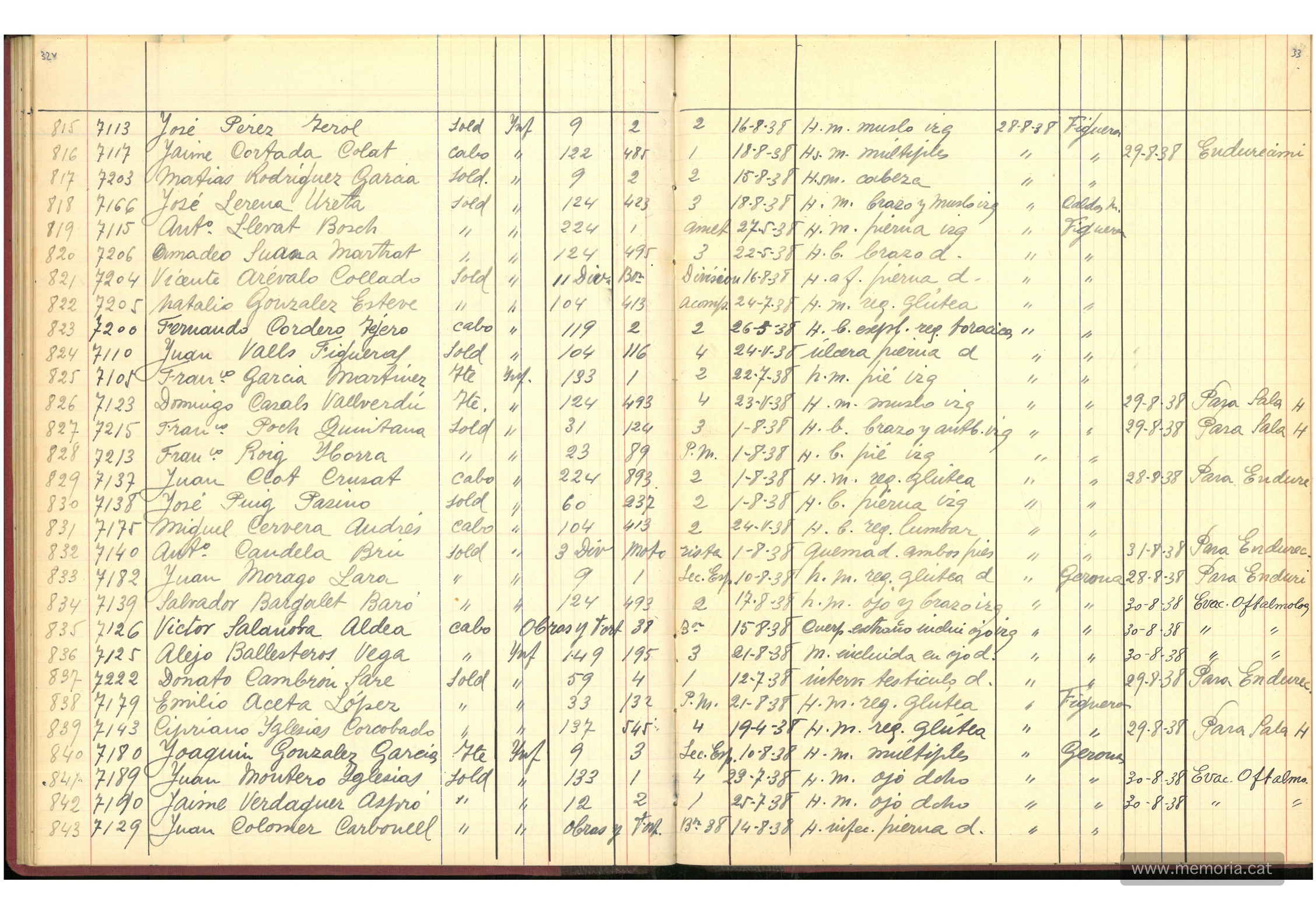 El llistat inèdit dels noms de 913 soldats ingressats a l’Hospital militar de Montserrat l’any 1938