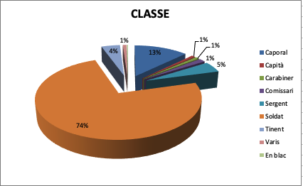 Aquí podeu veure els gràfics del llistat dels 913 soldats ingressats a l’hospital militar de Montserrat: per classe, per cos militar, per diagnòstic, per procedència i per destinació.