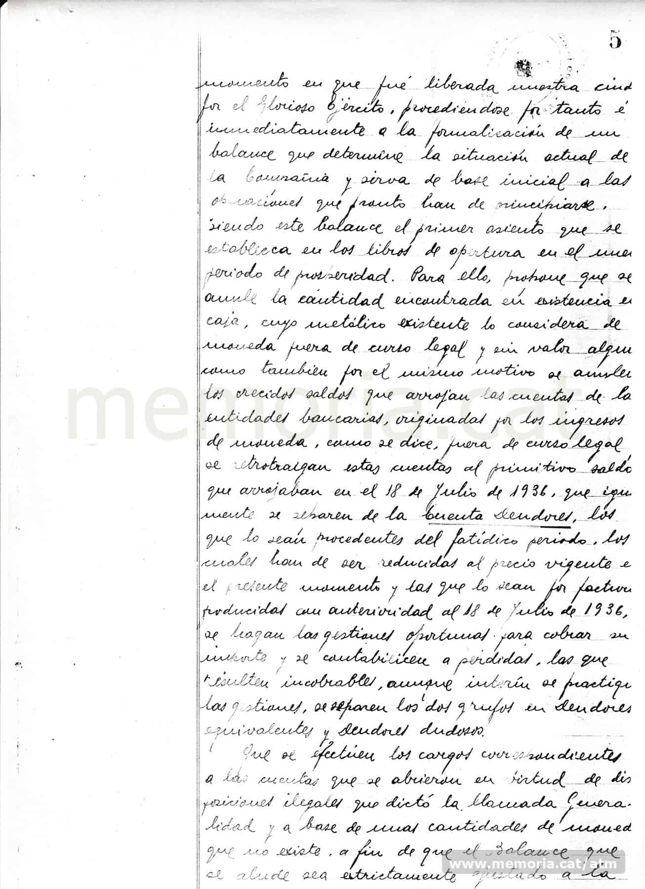 Igualment, en aquesta remarcable font primària, després d’aquesta valoració tan negativa del procés de col·lectivització que va viure l’empresa durant el període bèl·lic, s’hi detallen les mesures comptables, de finançament i administratives que s’aplicaran a partir d’aquell moment en el qual la família Santasusana ha recuperat el control del seu negoci. El president va proposar “que se prescinda de todo lo actuado y sentado en los libros de contabilidad hasta el momento en que fue liberada nuestra ciudad por el Glorioso Ejército…”