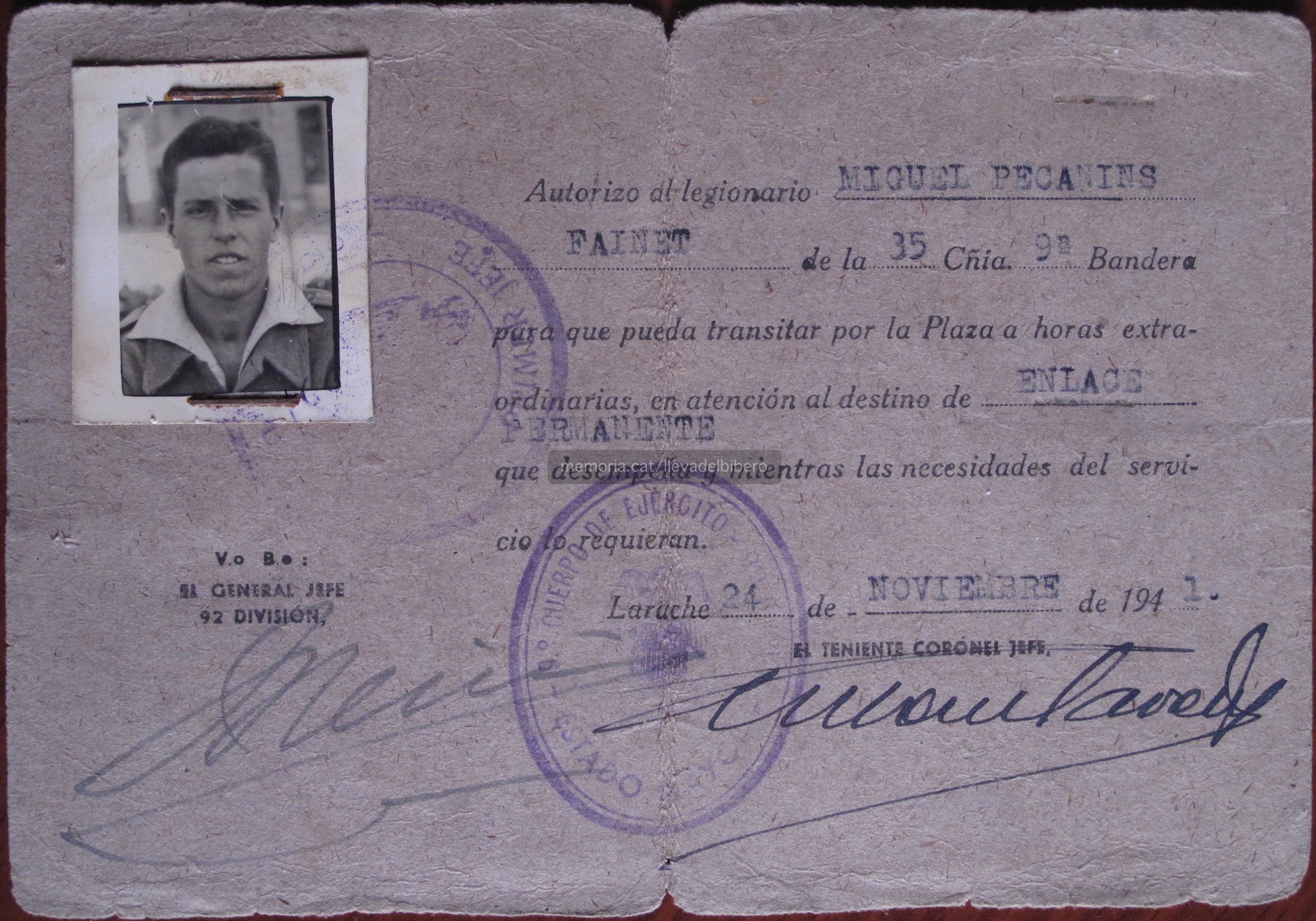 Quan van fer la crida perquè la quinta del 41 s’incorporés a files, el Miquel Pecanins feia quatre mesos que havia fet els disset anys. En aquesta entrevista ja es veu que és una persona viva; de la necessitat virtut. A Sant Vicenç de Castellet hi va fer cap una companyia de pontoners per fer pràctiques a les rescloses del riu Llobregat; s’havien de posar a punt per quan els necessitessin per passar l’Ebre. Es tractava d’uns ponts tipus mecano per al pas de vehicles i armament pesant. El Miquel els va demanar de quedar-se amb ells i li van dir que sí.