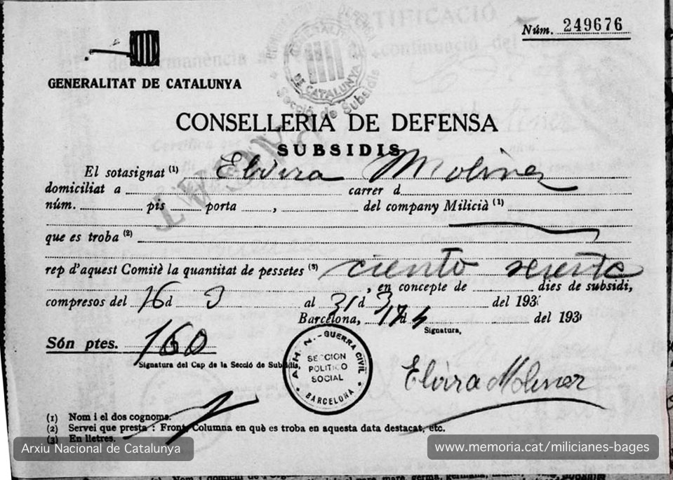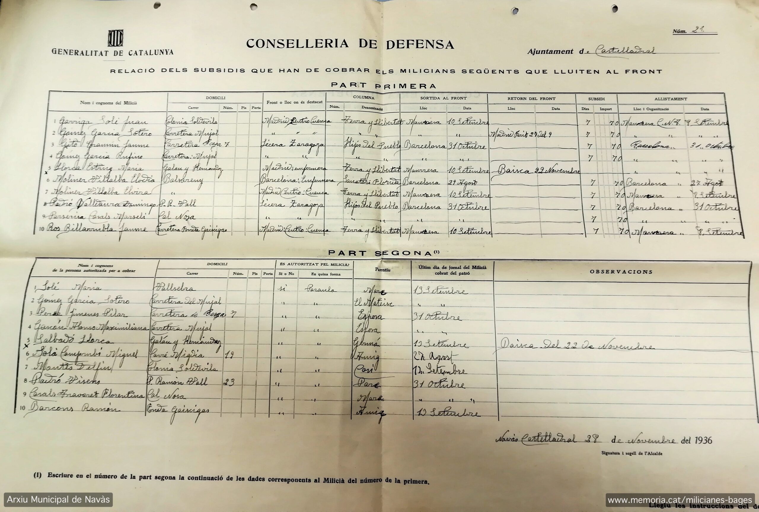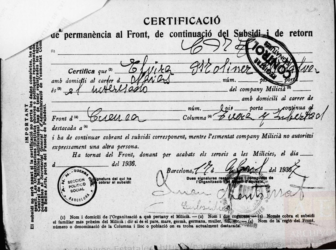 El subsidi de guerra el cobrava un seu cosí, Delfín Montes Villalba, nascut a Fuente de la Reina ( Castelló) i amb residència a Balsareny, concretament a la Colònia Soldevila.