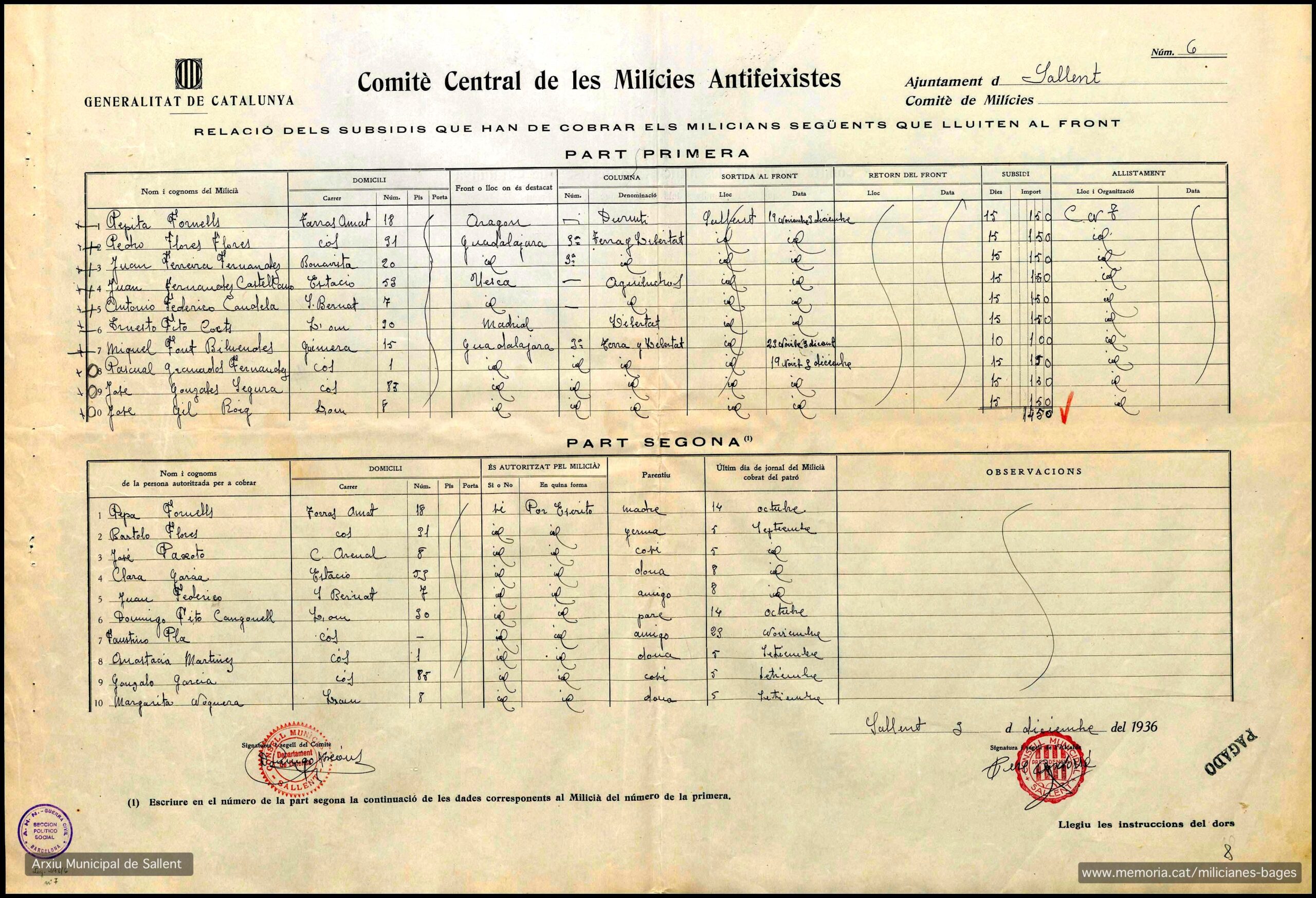 El seu germà Ramon va marxar amb la columna Tierra y Libertad.