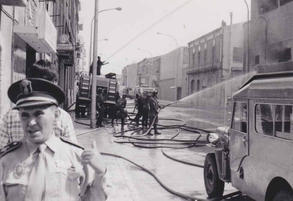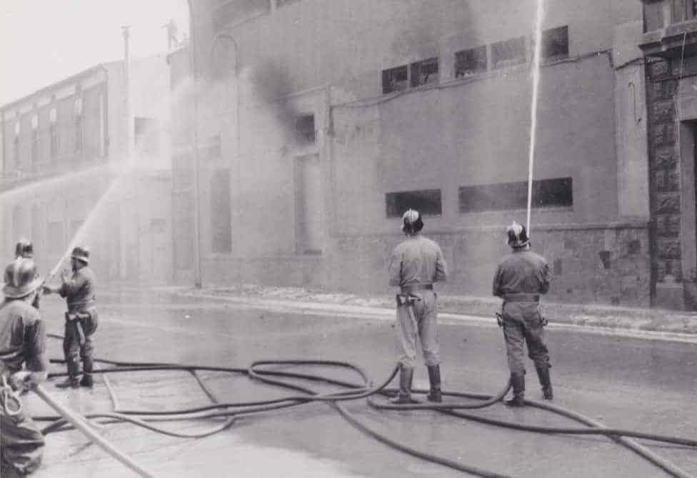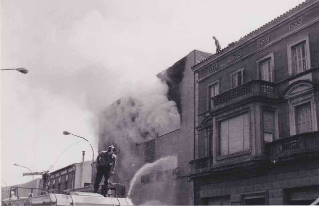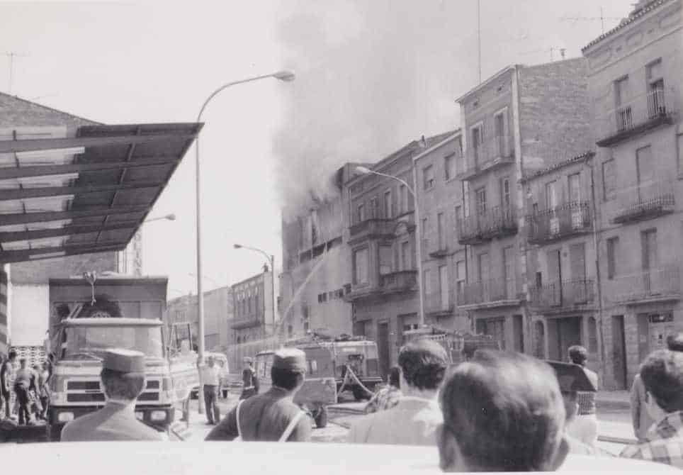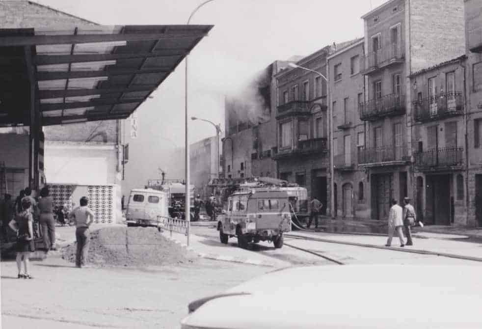 El comissari Enrique Mieza, amb qui m’unia una bona relació personal a través de la seva germana Carmen, escriptora i novel·lista, de seguida em va rebre i fent-se càrrec de la urgència va ordenar que un destacament de tres vehicles que estaven al pàrquing a l’espera de servei es desplacessin cap a la fàbrica, mentre ell pujava al meu cotxe. Em vaig posar darrera de la caravana que, en sortir de la comissaria de la plaça Espanya, enlloc d’enfilar pel lateral del Passeig tiraren pel bell mig per evitar retencions. Jo no sabia què fer, però en Mieza em va indicar enèrgicament: “sigue detrás!”. De manera, que a contra direcció vam plantar-nos davant la façana principal de la fàbrica en un tres i no res. Des que havia marxat fins que vaig tornar pràcticament no havia transcorregut ni un quart d’hora, però el foc havia esdevingut dantesc i les flames i una columna de fum negre impressionants, s’elevaven bastants metres per sobre la teulada de la nau que ja començava a claudicar. Els bombers també acabaven d’arribar i colpits per la magnitud del sinistre van demanar reforços a d’altres casernes. Afortunadament, tot el personal havia sortit al carrer sa i estalvi i no havíem de patir per desgràcies personals. El Jurat d’Empresa de seguida es va posar a disposició pel que calgués i va tenir un comportament exemplar, evitant la crispació del personal i asserenant els ànims dels que temien haver-se quedat al carrer per sempre.