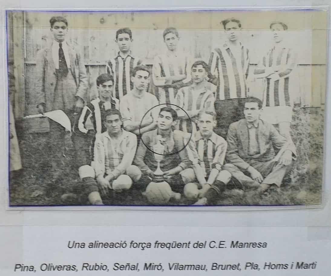 Tanmateix va ser per aquesta època quan es va embolicar amb el futbol. Aquest esport es va començar a practicar a Manresa a principis de 1900, al pati de joc dels Maristes. L’any 1903, els negocis portaren a treballar al Bages un destacat jugador del Barça, en Verdier, que poques setmanes després coincidí amb un altre antic company d’equip, el defensa Paco Bru. Més que res per matar el cuc, i amb caire totalment desinteressat, ambdós acceptaren d’impartir algunes lliçons pràctiques a la canalla que donava puntades de peu a pilotes de tota mena de materials, sense gaire estil ni traça. Aviat, però, en aquells entrenaments informals despuntaren uns quants jugadors que podien tenir futur: els germans Lluvià, en Mora, en Guitart… L’any 1905 el pati de Sant Ignasi es va fer petit i els entrenaments es varen traslladar al camp de la Cova, on s’hi estigueren fins 1907, que es va fundar el Manresa C.F., amb seu social al Casino Artesà, jugant-se els partits al camp dels Barrets.