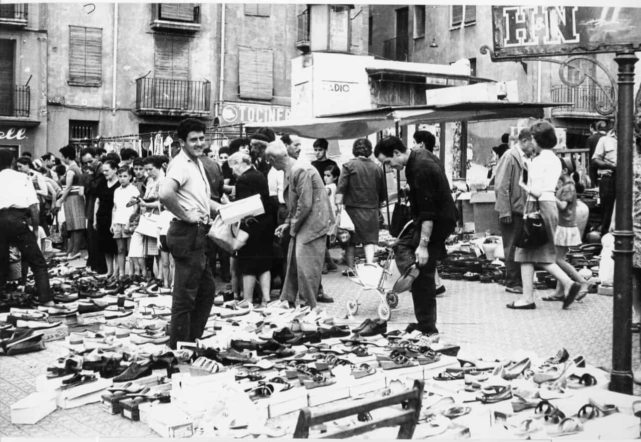 Ha anat pujant per la muralla del Carme, on hi ha les parades del mercat, a banda i banda de la vorera. Tocava mirar sabates i mitjons. S’encanta davant la porta dels Bombers, per contemplar un camió vermell, lluent i les llargues escales repenjades a la paret. Ara entraran a les Mandongueres, al costat mateix del Parc de Bombers. Però ja fa estona que frisa. De setmanes enrere, ho sap dels altres dissabtes que han vingut, hi ha un mercat nou a la plaça dels Infants: el del plàstic, tota una estesa, és una novetat. Galledes i gibrells que són de colors, pesen poc i no es trenquen. És una raresa, almenys per ell. Tants objectes de cada dia i semblen canviats i ben nous, galledes grogues, cossiols verds, pots blancs… Li falten ulls per veure-ho tot. Ja tenen una palangana blava i potser podran comprar alguna altra cosa.