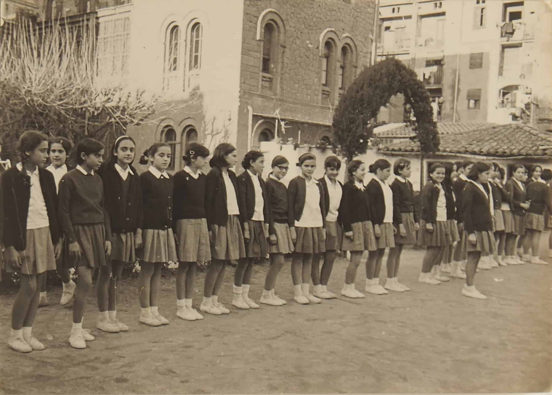 Anàvem a l’escola amb uniforme: un vestit blau marí de màniga llarga i amb un coll de plàstic blanc que es podia rentar bé, i mitjons i sabates marrons. A l’hivern, un abric blau marí també d’uniforme i cada dia, quan arribàvem a la classe, ens posàvem la bata, també d’uniforme. Per a les festes senyalades portàvem barret i tot.