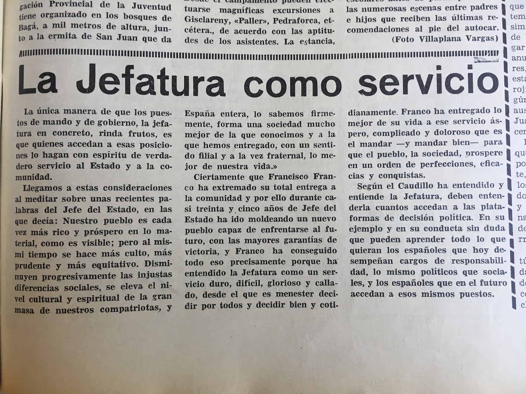Aquesta valoració justificava la por del tàndem Soldevila-Carreras a si es deixaven fer eleccions es podien infiltrar a la casa gran un o dos homes incòmodes, “submarins” dels esgarrapacristos desafectes al règim. Aquesta possibilitat, gens exagerada, en opinió dels que remenaven les cireres podia fer anar en orris la bassa d’oli del cartipàs municipal; a part de costar-li la rectoria i els seus privilegis a algun fill predilecte que s’ho mereixia més. Amb totes aquestes consideracions damunt la taula, els homes forts del Movimiento van decidir que a Manresa no feia cap falta recórrer a les urnes per substituir els concejals de cap terç i menys del familiar. Oficialment es va mirar de quedar bé amb la vianda al plat, manifestant que era una bona mesura d’austeritat pressupostària. “Només es té allò que s’estalvia…”, m’explicava amb sornegueria, un dels concejals escolans d’amén de l’alcalde, el senyor Roca Fainé. No puc resistir la temptació de reproduir dues significatives editorials que aparegueren a “MANRESA”, que es retolava com “periódico de la ciudad”, abans i després de les eleccions a procuradors de l’any 1971 i que reflectien, de ben segur, el pensament dels que tallaven el bacallà a la capital del Bages, encapçalats pel propi Soldevila, al qual li va costar refer-se de que a casa seva els candidats “oficials” fessin figa. Les trobareu adjuntes a aquest article. Us en recomano la lectura perquè es tracta de dues “perles”. El primer d’aquests editorials va publicar-se el 17 d’agost de 1971 i portava per títol “La jefatura como servicio”. A l’altre editorial, que també s’hi podia sucar pa, es va publicar el 16 d’octubre de 1971, sota el títol: “Partidos Políticos”. Pràcticament varen ser aquests els dos únics escrits que aparegueren al periòdic local amb referència a les eleccions de procuradors, la campanya de les quals van ignorar les pàgines del “MANRESA”. No obstant això, ambdós són reflex de la malfiança i del ressentiment amb que determinats sectors conservadors i immobilistes de la ciutat es miraven l’aparició primer i la victòria després d’una candidatura recolzada per un grup de galifardeus i descamisats manresans.