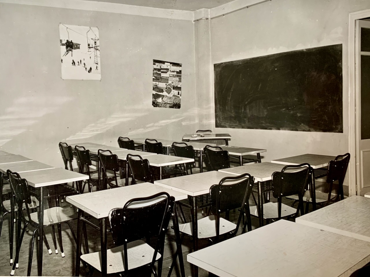 A l’Escola érem els més novells. Compartíem espai i algunes formacions amb els grups de nivells superiors, encara que cada un tenia aula pròpia. El grup de segon eren nou alumnes i el de tercer quatre. De fet, en finalitzar els estudis, el 1978, nosaltres també vam acabar quatre: l’Anna Tuset, l’Àngela Blàzquez, la Neus Closa i jo. Els dubtes sobre les sortides professionals, van provocar la majoria de desercions. Aquest no era el cas de la Montserrat, però en aquell moment desconeixia les seves raons. Eren unes altres.