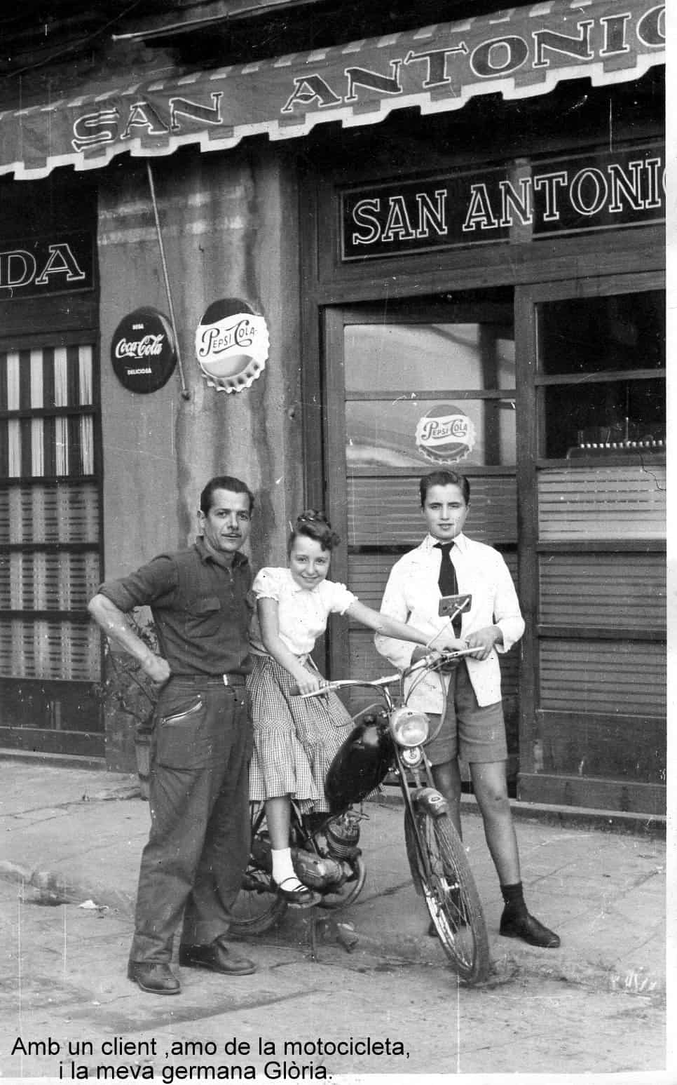 La seva germana Josepa, amb el seu segon marit i les seves dues filles, portaven la famosa Bodega Andalusa; establiment típic per les seves tapes i begudes, que hi havia, i que encara existeix, però portat per unes altres persones, en la Via de Sant Ignasi, xamfrà amb el carrer Cantarell. El senyor Bajona, o Bajona a seques, com li dèiem a casa, va tornar de França, on havia marxat amb l’exili global de la Guerra Civil, quan el franquisme havia obert algunes escletxes de tolerància. Va entrar a treballar de xofer del camió de la serradora de cal Victori. I, sembla ser, que la seva germana des de la Bodega, el va fer de bo amb una vídua, deien que molt rica. Total que venien sovint a dinar o a sopar a la meva Fonda, diria que vivien al carrer de Sobrerroca. Recordo que sempre es discutien davant de tothom. Aquella mena d’aparellament va durar poc; i el resultat va ser que el Bajona va entrar a dispesa a casa nostra. Sempre el teníem allà, no ens deixava respirar, tan sols algun dia anava a dinar a casa la germana o les nebodes, però molt poc. Era com un corcó, no s’aguantava gaire temps enlloc. Sé que les seves dues nebodes, quan parlaven d’ell, li deien “el tiet pesat”.