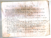Una octaveta, segurament feta amb una copiadora a mà, a tinta, una “vietnamita” on s’havia de copiar full a full. Gairebé que aquest mig full ciclostilat és ja un document, un document amb vuit arguments i encapçalat per un títol: “Razones para no votar”, i entre els que es pot llegir: