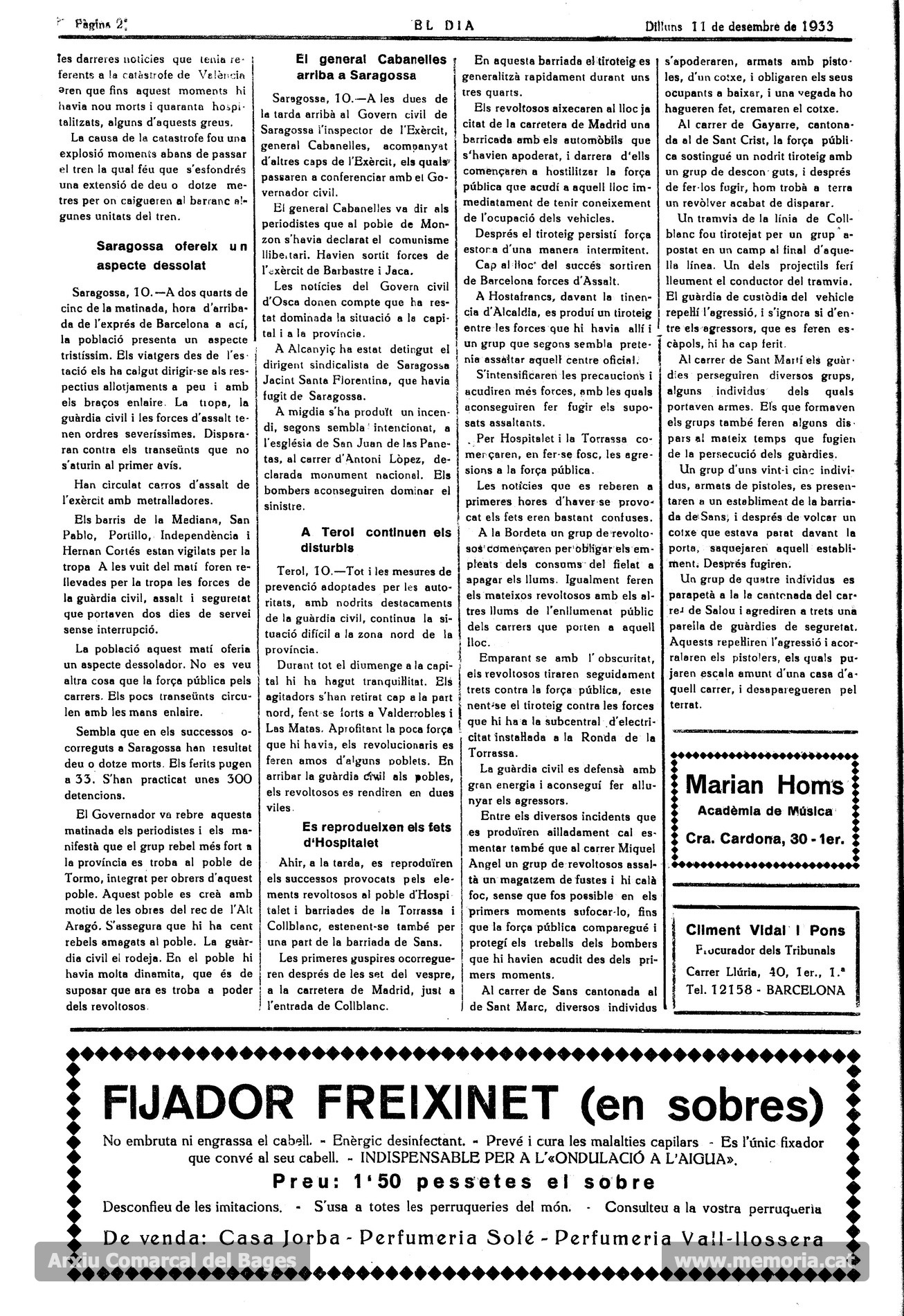 Davant d’això, el desembre de 1933 la FAI intentà un moviment insurreccional general que fracassà. A Manresa, foren dinamitats dos transformadors elèctrics, cosa que deixà la ciutat a les fosques. Hi hagué una desena de detencions.