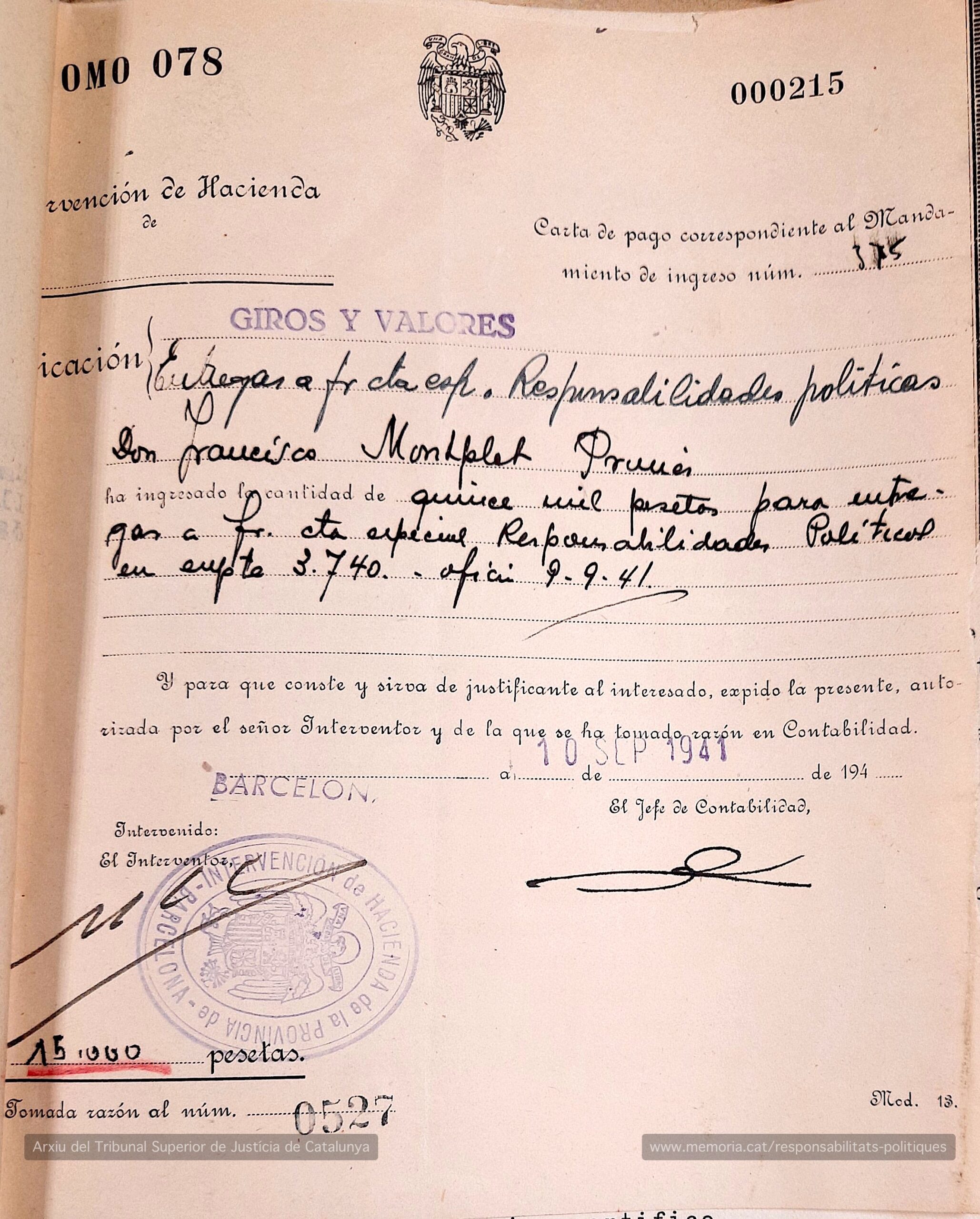 Els Tribunal de Responsabilidades Políticas van sotmetre els represaliats a un llarg procés d’investigació per tal de castigar-los econòmicament per les activitats polítiques que havien portat a terme des de 1934.